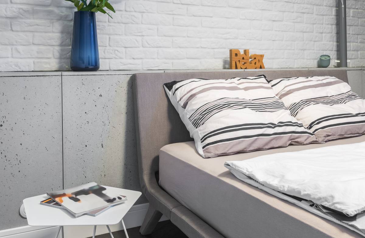 Postaw na lekkie i jasne łóżko, które ma schowki na pościel.